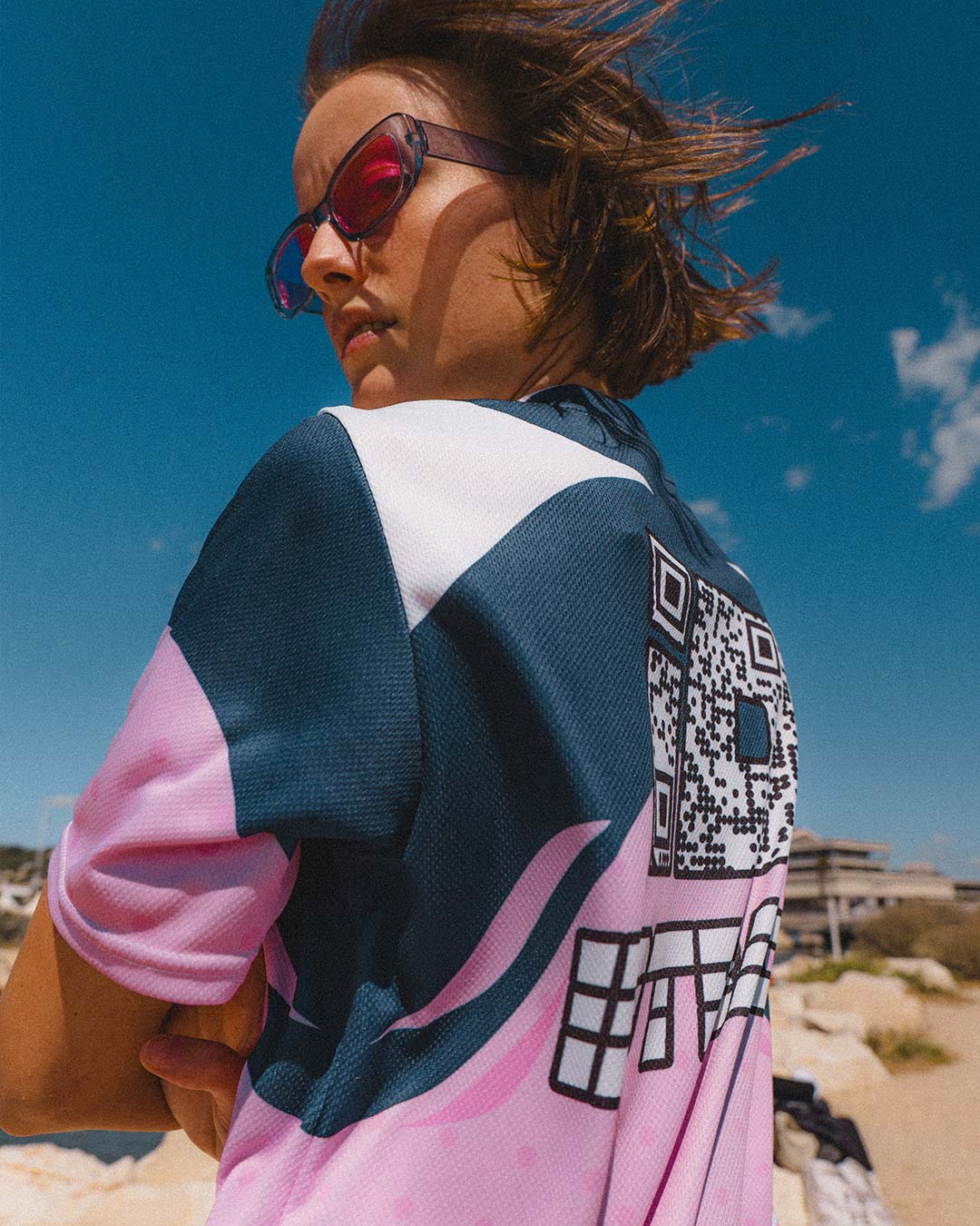 Each rave jersey comes with QR CODE that links directly to your links: playlist, artist page, socials, drops, whatever defines your vibe.